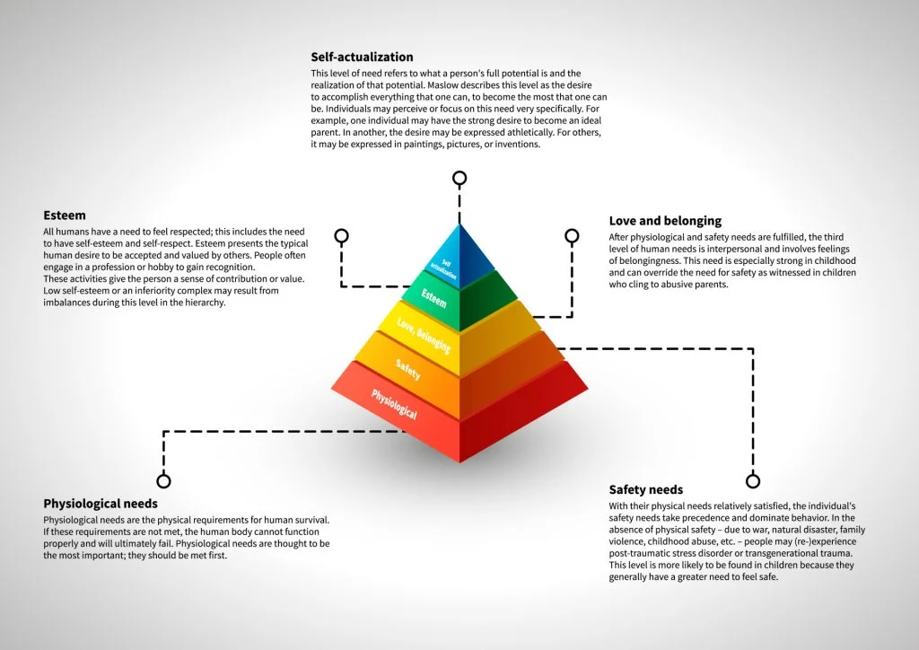 4. The order of the levels is not completely fixed. For some, esteem outweighs love, while others may self-actualize despite poverty. Our behaviors are usually motivated by multiple needs simultaneously.
